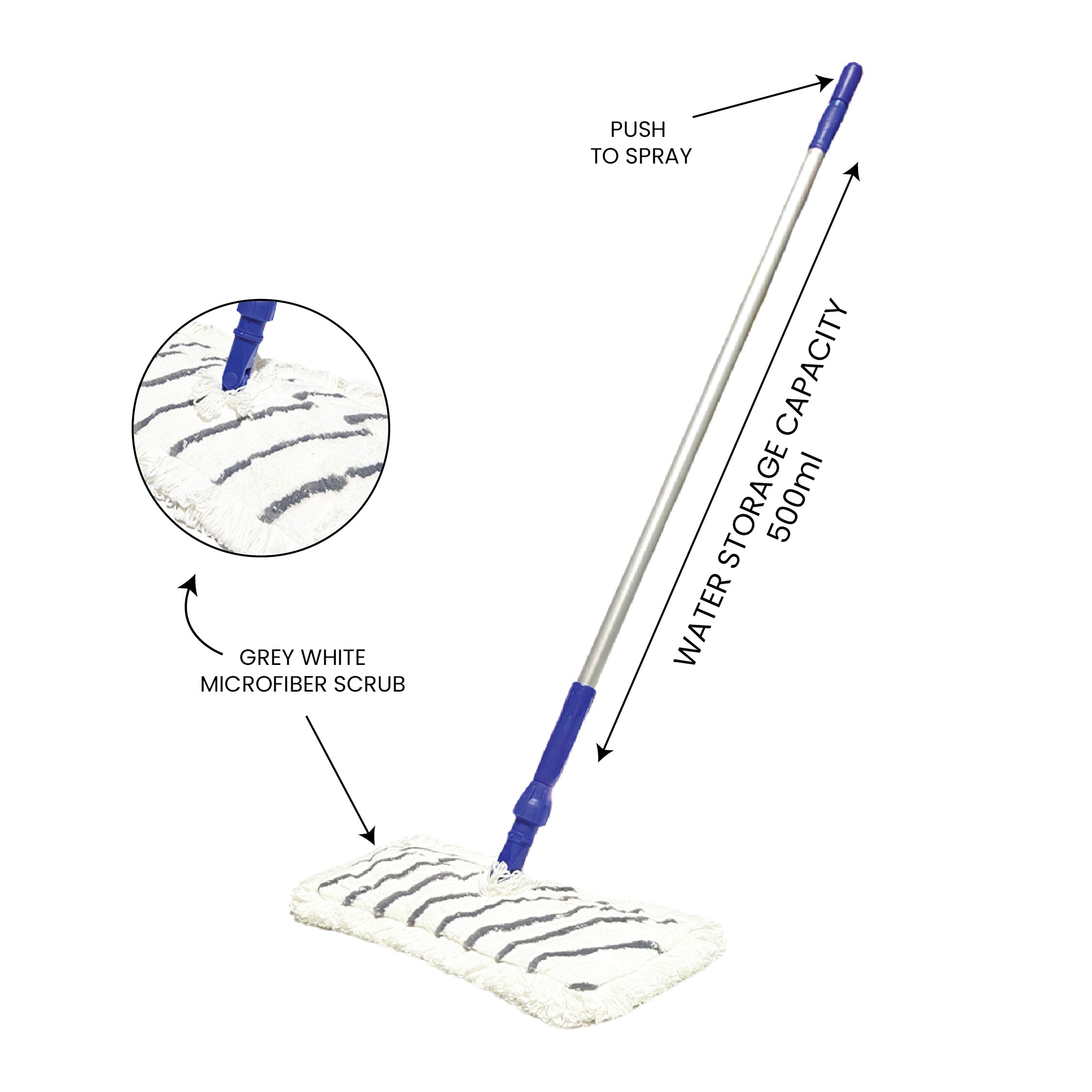 Greenway Quick Spray Water Handle — Microfiber (Grey White) Water Spray Flip Mop